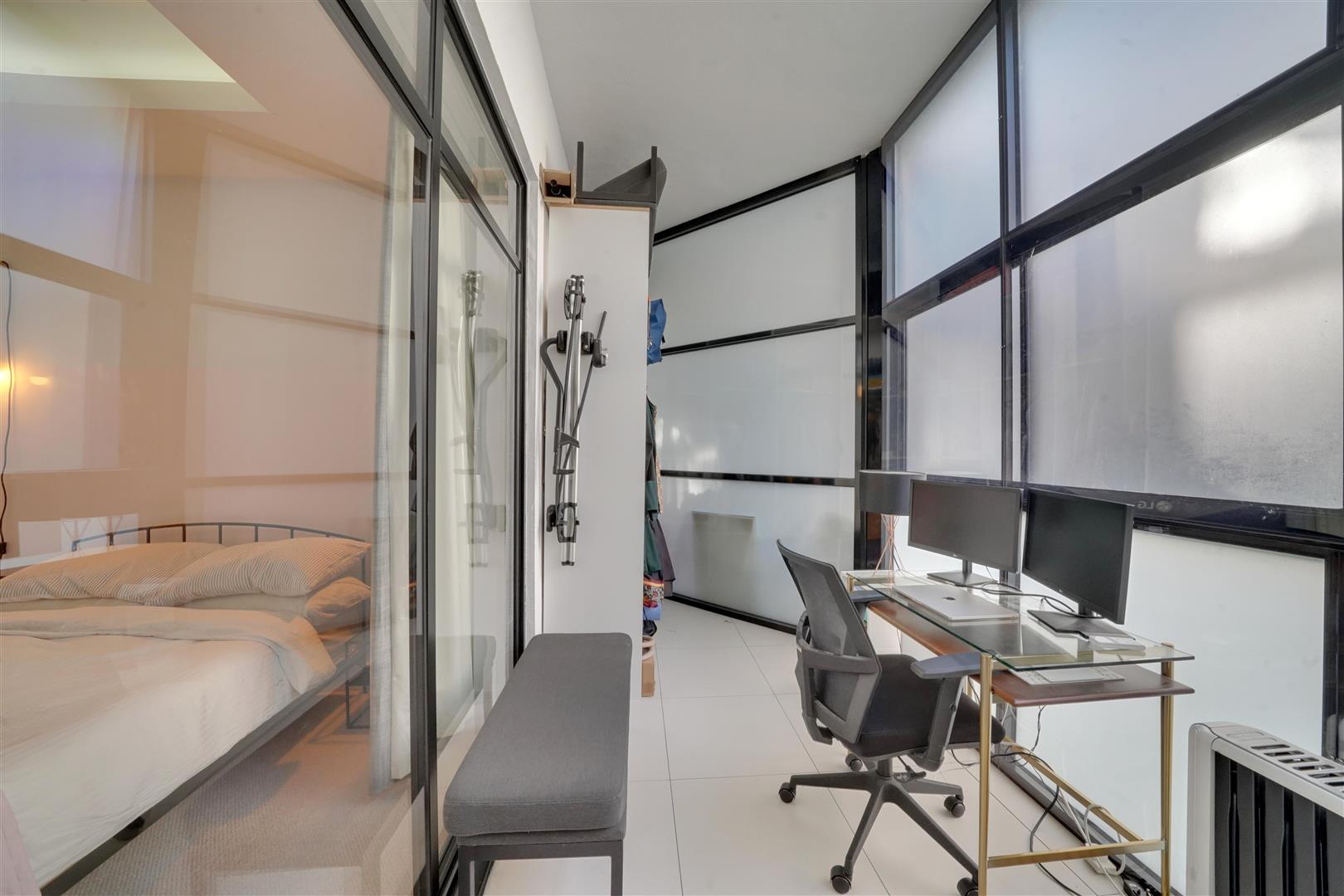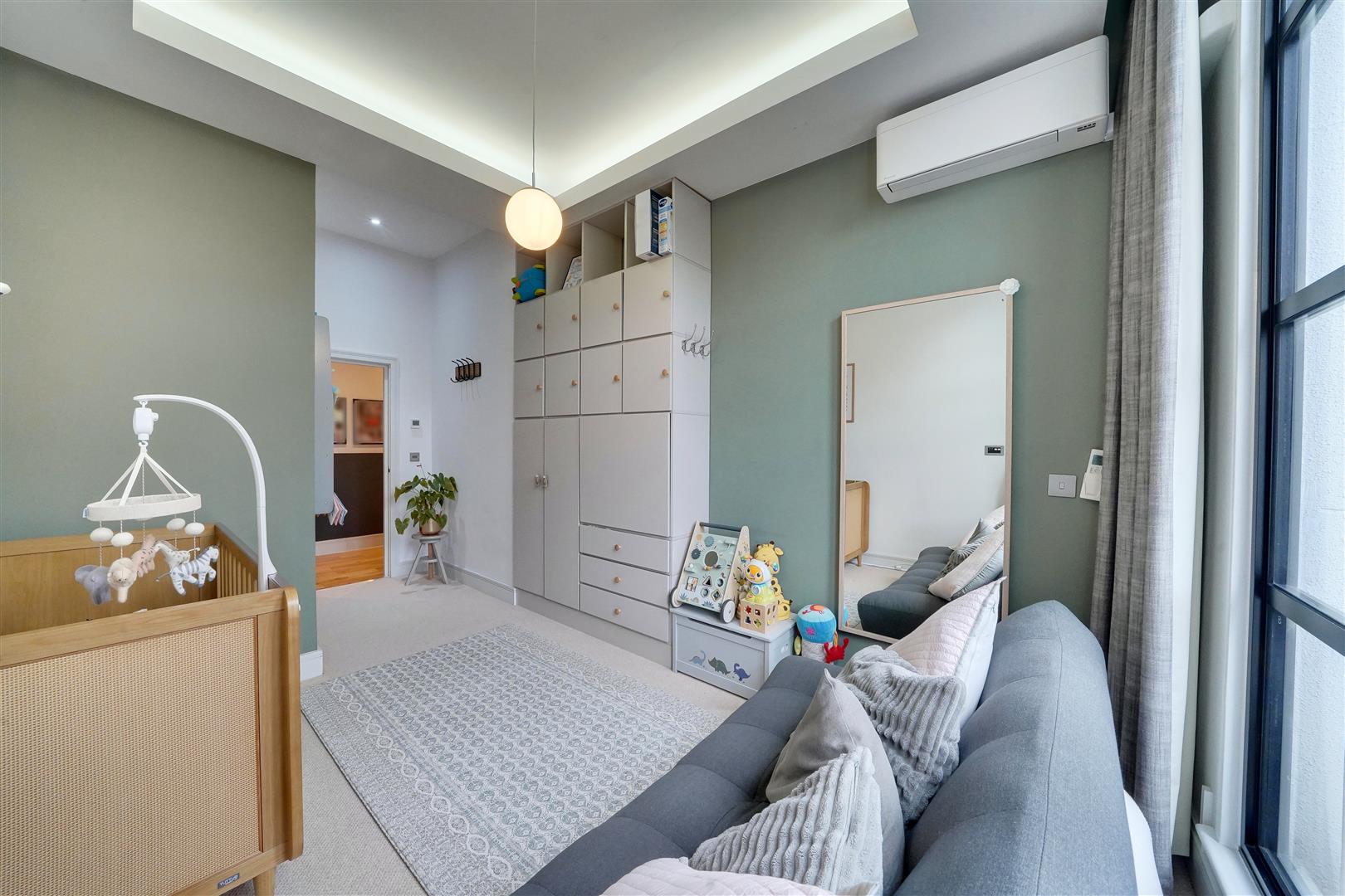 Large double doors open directly onto a stunning private terrace, also accessible from the second bedroom — perfect for entertaining, relaxing, or enjoying morning coffee in the open air. The separate winter garden currently serves as a home office with built-in storage, offering superb flexibility and effectively creating a highly desirable 2.5-bedroom layout.