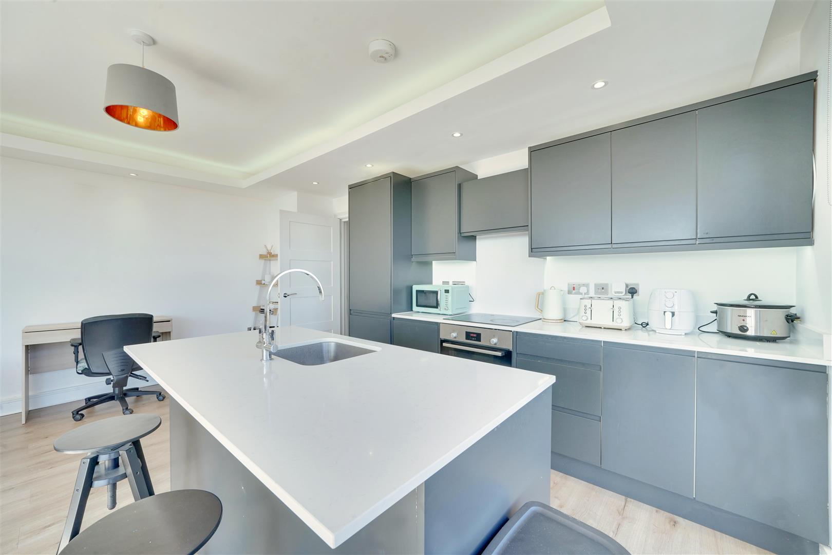 The principal bedroom comes complete with its own en-suite shower room, while the second double bedroom is served by a contemporary family bathroom off the hallway. A generous hallway with a large storage cupboard ensures practicality matches the style.